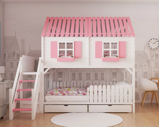 Voir le produitLit Cabane 90x190 - Barrières Sommier et Tiroir
