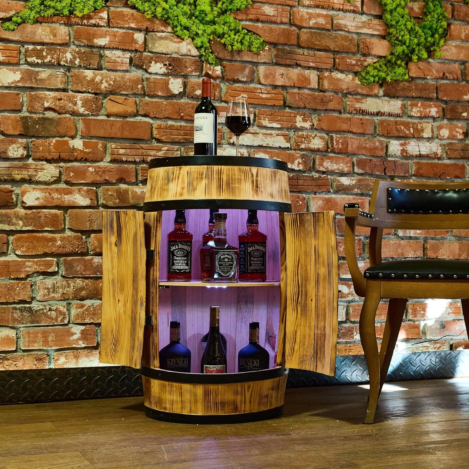 Bar Tonneau Led en Bois avec 2 Portes - 2 Étagères