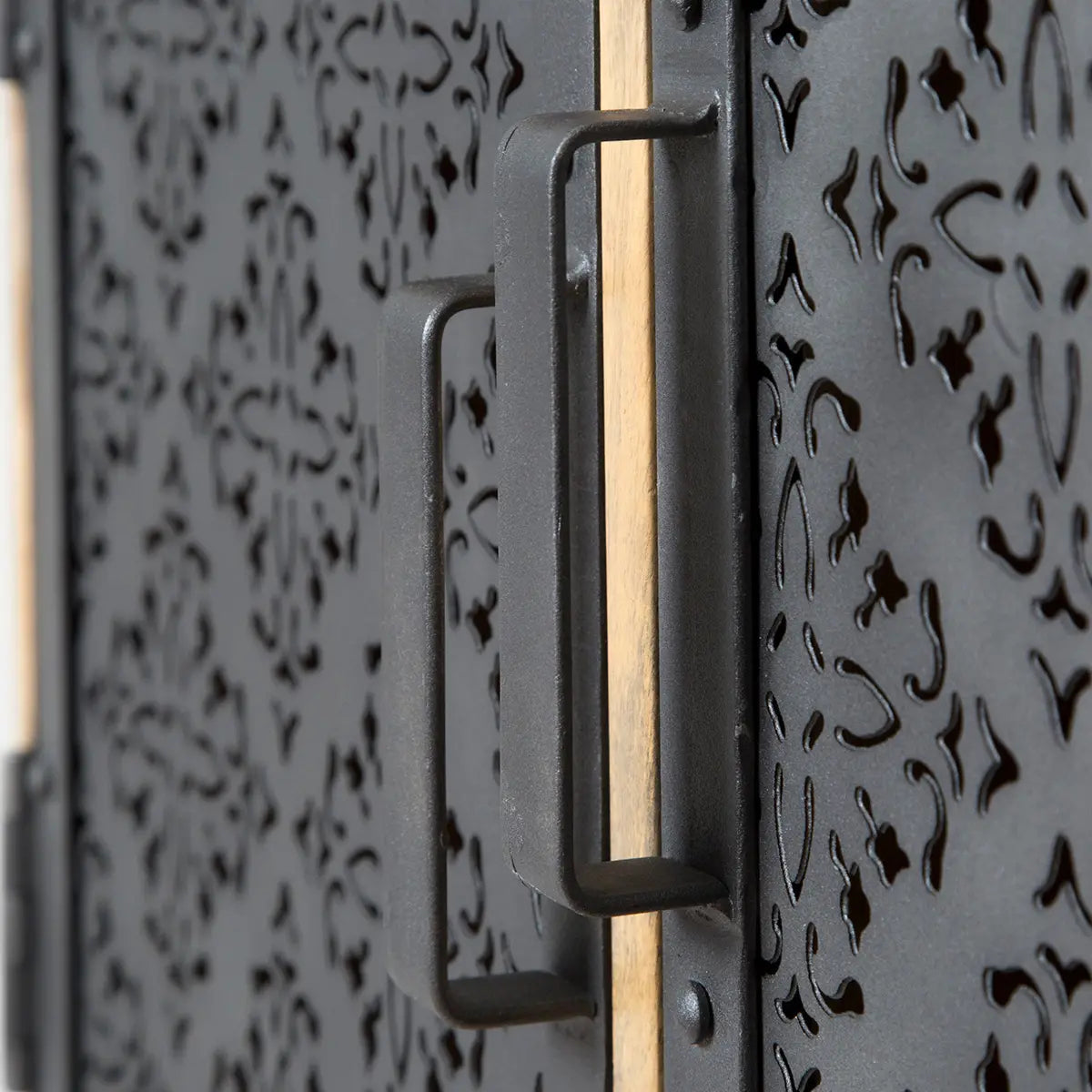 Ses motifs complexes et ses détails ajourés offrent un équilibre parfait entre robustesse et raffinement. Avec trois portes et quatre niches, il offre des solutions de rangement polyvalentes, idéales pour organiser vaisselle, livres ou objets décoratifs.