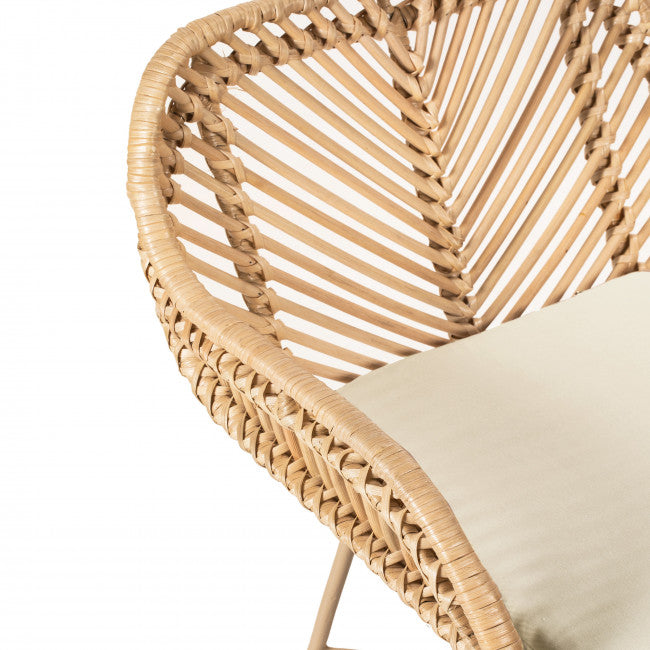 • Matières : Rotin tressé à la main (siège), métal (structure)