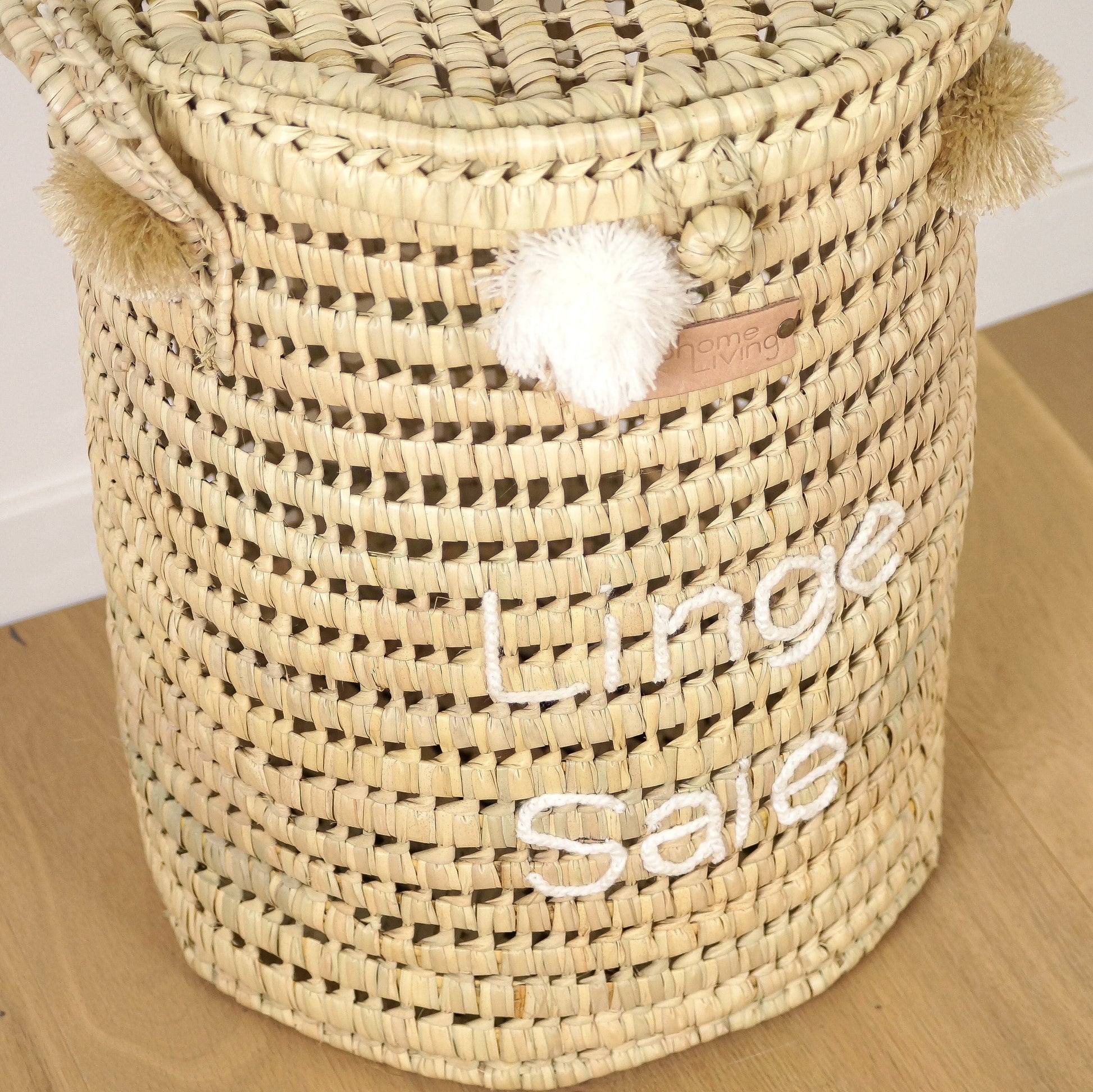 Panier à Linge en Feuilles de Palmier avec Pompons - Linge Sale